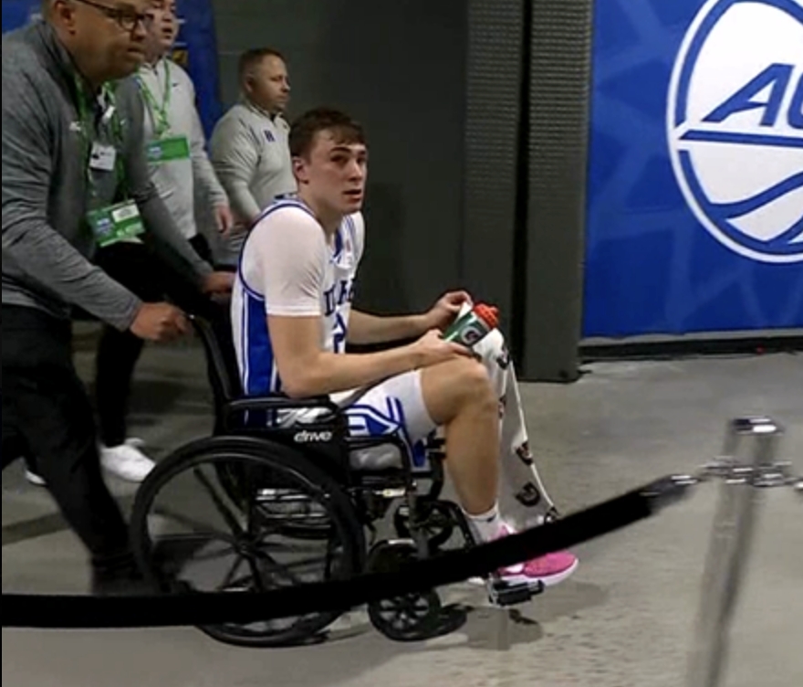 3月14日,ACC分区锦标赛1/4决赛,杜克大学对阵佐治亚理工学院上半场,弗拉格在抢篮板落地时踩到对手恩东戈的脚上扭伤脚踝,他起身后被搀扶着走到场边,之后坐着轮椅离场,在接受检查之后自行走回球队替补席,下半场没有出战。