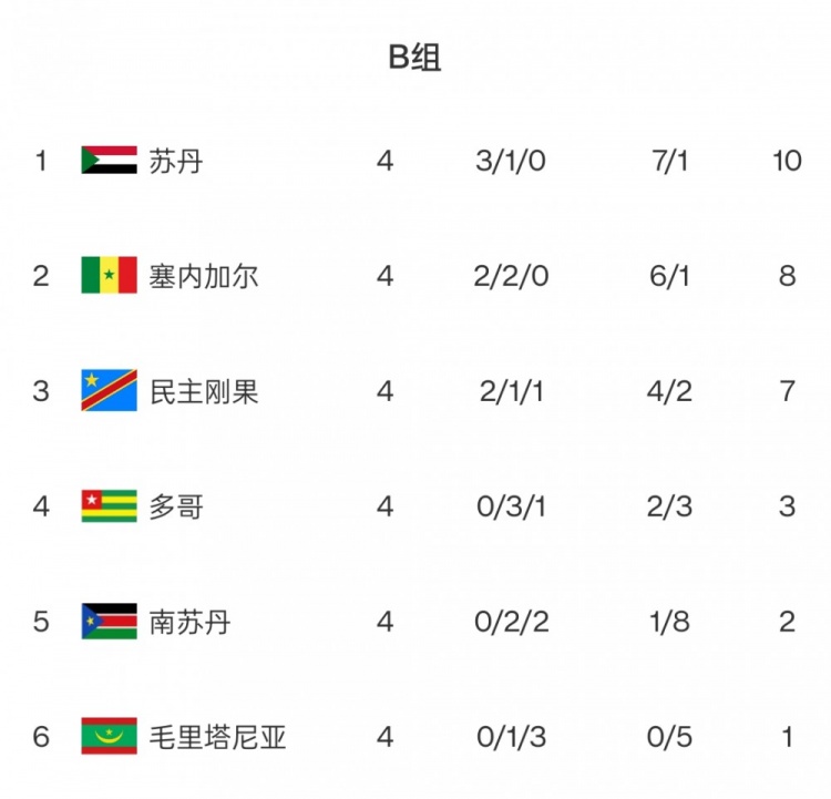 B组:马内领衔的塞内加尔意外落后苏丹,两队将于本周五迎来一次正面对决