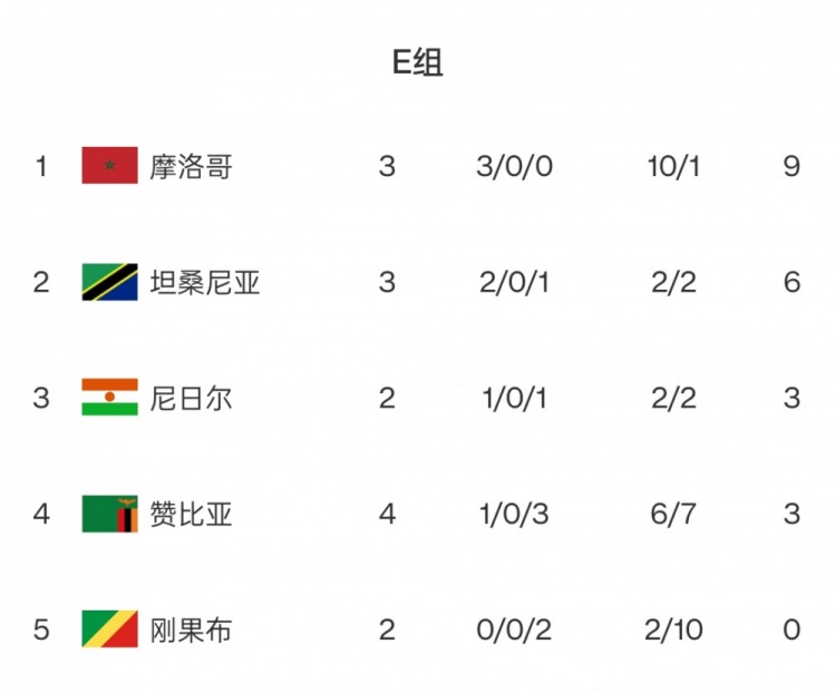 E组:摩洛哥无悬念领跑,因厄立特里亚退出仅剩5队
