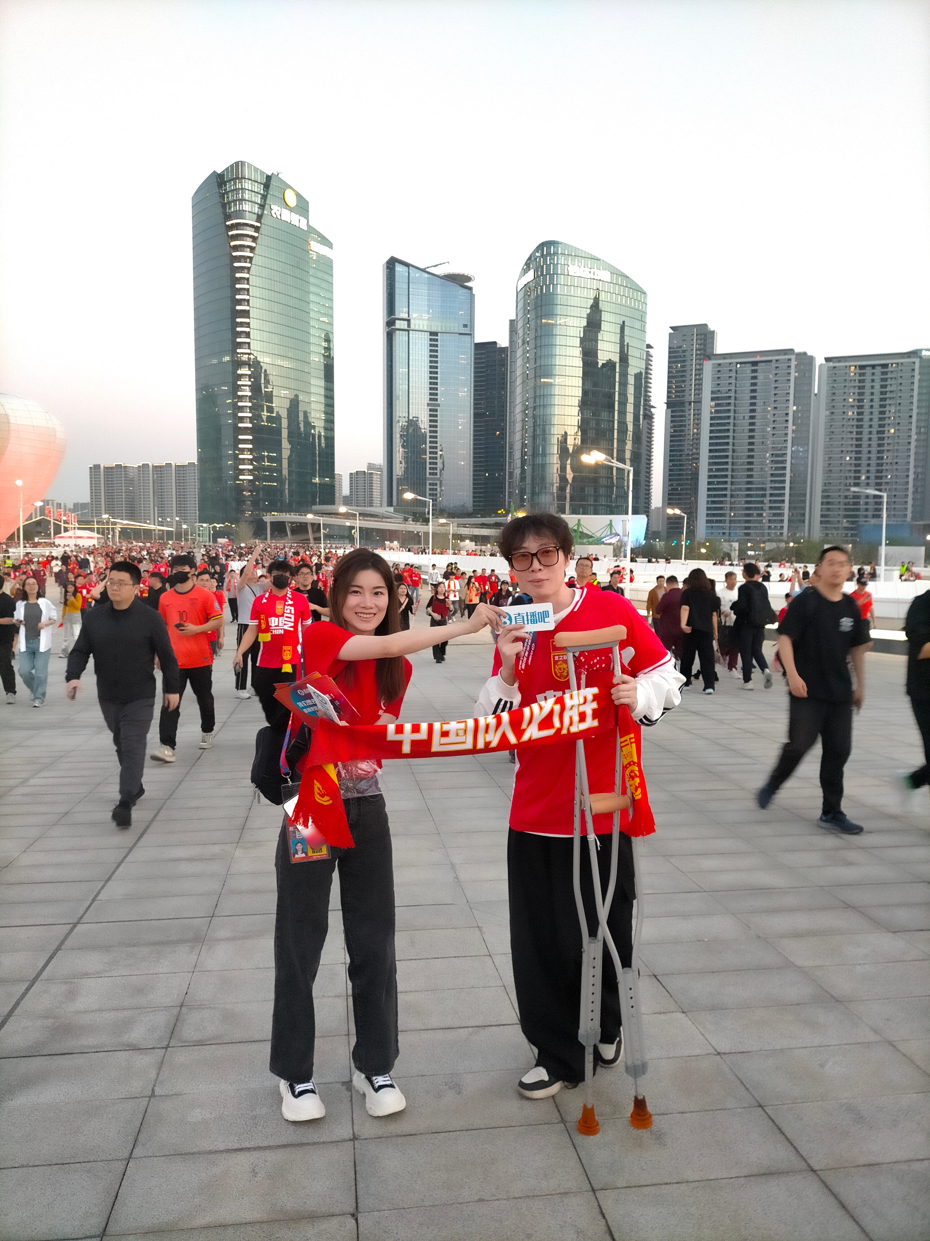球迷入场前,特邀知名足球解说员刘畅、吴桐现身球场外围互动区,与候场球迷共同开启“我们想去美加墨·国足知识大挑战”主题活动。两位解说以专业又不失风趣的风格串联答题环节,现场球迷踊跃参与,争夺国足助威围巾等限定周边。活动过程中,一位从西安乘坐火车辗转20小时,专程来见证这场比赛的12年老吧友坦言:“胜负之外,主队永远值得奔赴”。更有广东韶关学生球迷不惜暂时放下学业来杭州观赛,以自身行动诠释“00后”对国足的热忱。