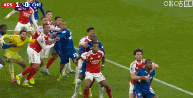 “他的手臂抬起来了。我实在搞不懂他们在看什么。 德克兰(赖斯)其实是在拉他。他的手臂本来就举着,现在又往上动了动。我看到这一幕时,以为主裁判会判点球。”