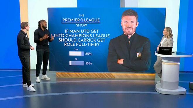 卡里克接手曼联时,球队排名英超第七位,落后阿斯顿维拉11分。现在,他们已经积分追平维拉,并靠净胜球优势反超排在第三。吉姆·拉特克里夫爵士的曼联董事会面临一个难题,他们在下任主帅的挑选中可能别无选择,只有转正卡里克!目前,调查显示85%的球迷力挺他下赛季继续执教。