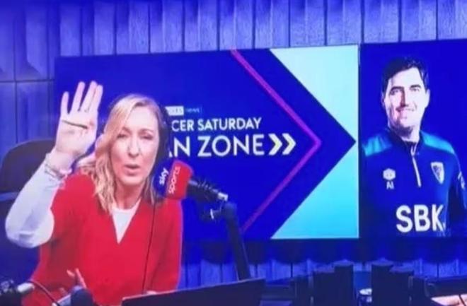 在伯恩茅斯1-1战平桑德兰的赛后报道中,天空体育新闻主持人维姬・戈默索尔遭遇突发意外,不得不迅速做出反应。