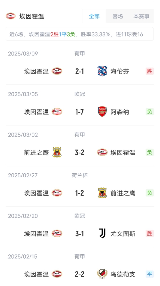 埃因霍温首发:1-贝尼特斯、37-莱德斯马、39-纳加洛、4-奥比斯波、3-马拉西亚、20-古斯-蒂尔、22-斯豪滕、25-巴巴迪、11-巴卡约科、5-佩里西奇、21-德里欧