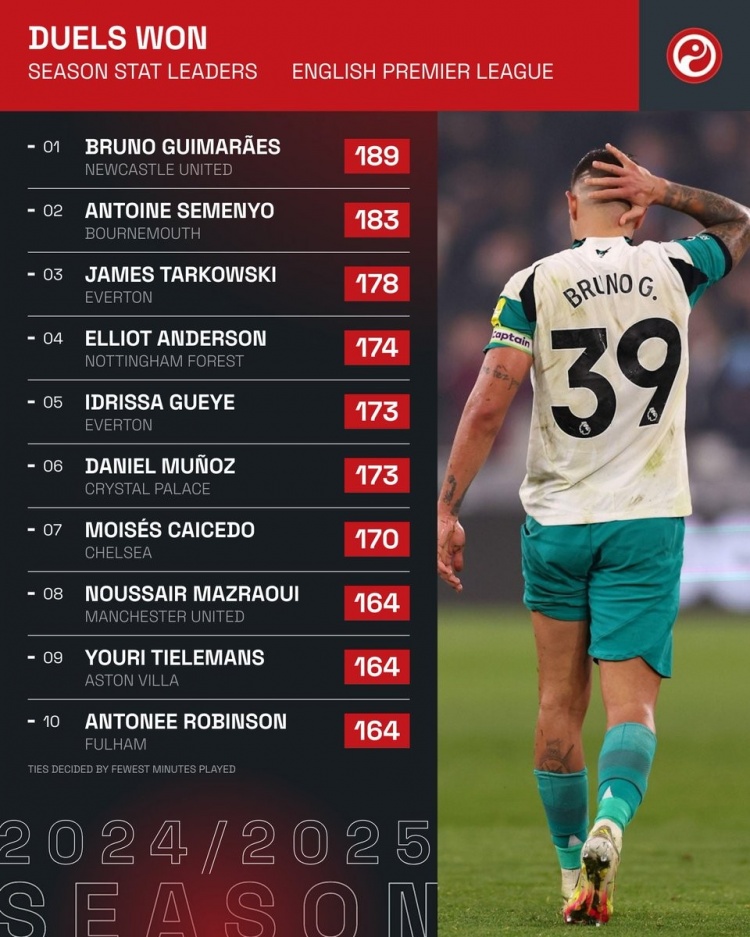 2025-03-18 07:12:31本赛季英超成功对抗榜:吉马良斯居首,凯塞多、马兹拉维在列