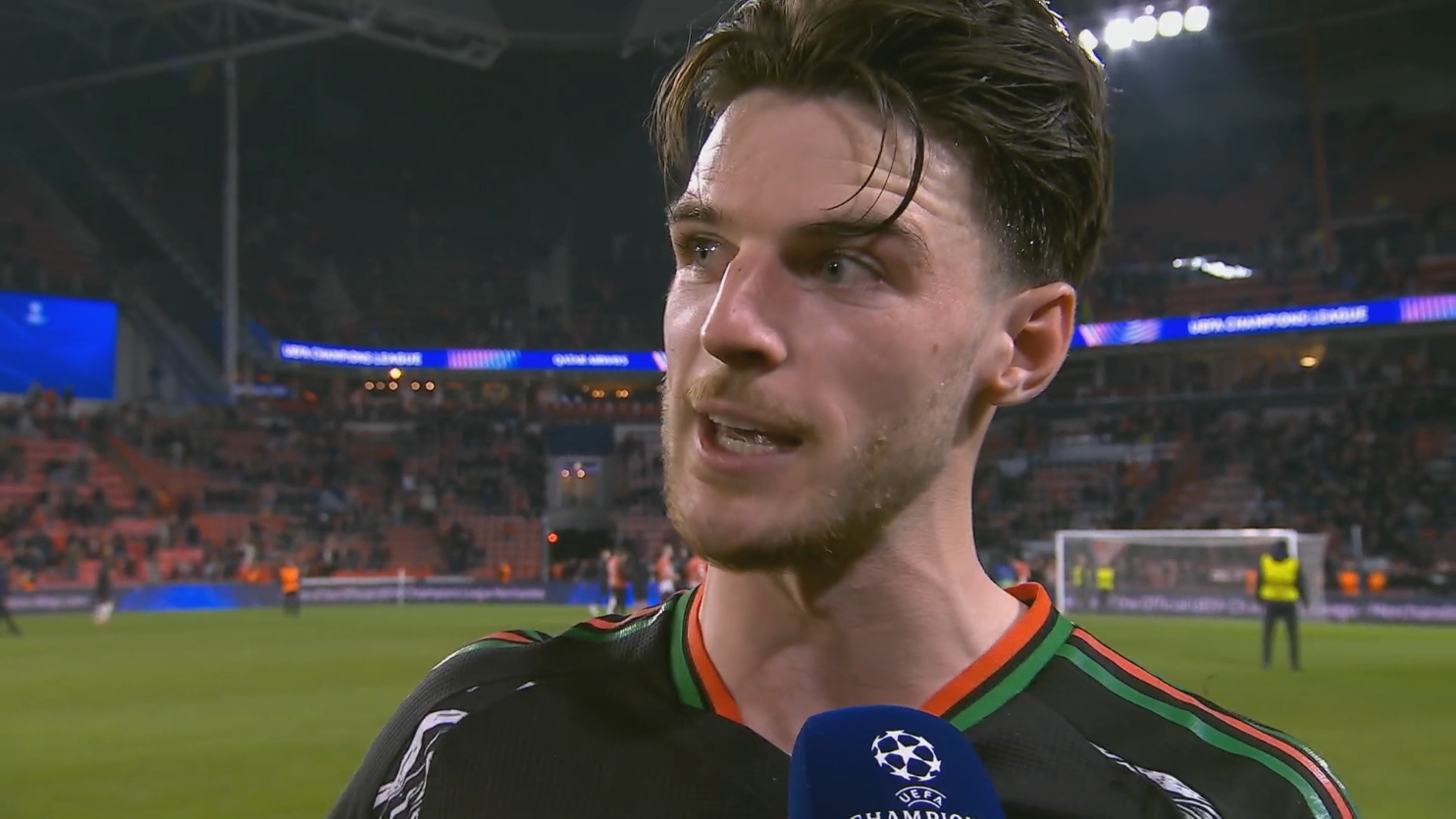 03月05日讯 欧冠1/8决赛首回合,阿森纳客场7-1大胜埃因霍温,赛后阿森纳中场赖斯接受采访。